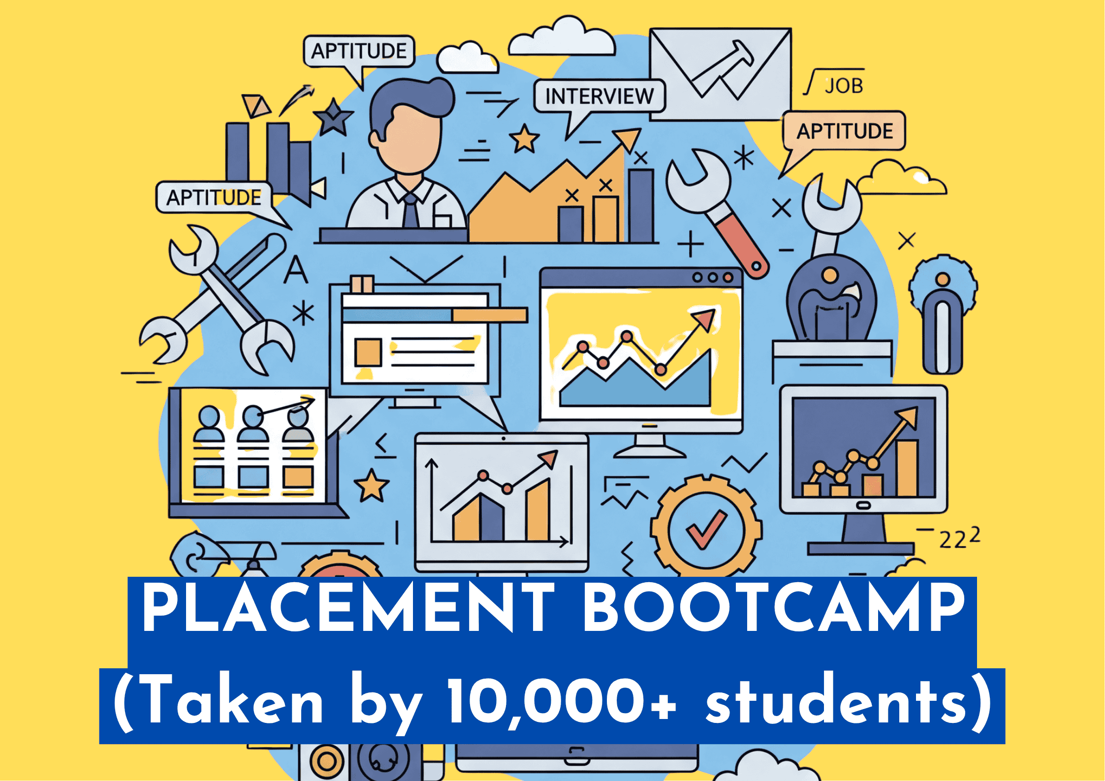 Our Complete Career Launchpad Bootcamp offers comprehensive training, including aptitude coaching, an ATS-compliant resume, and extensive interview preparation. With 5 realistic mock interviews and 5 expert coding clarification sessions, this program is designed to significantly boost your confidence and job search success. Get ready to unlock your dream job with our holistic approach to career readiness.